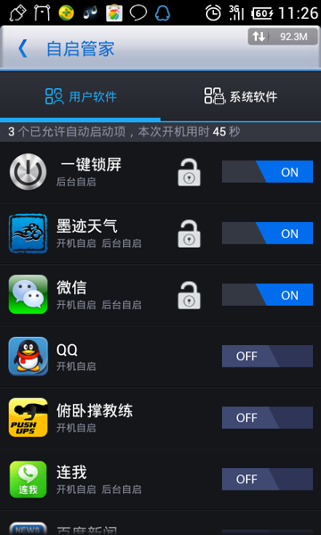5、刪除開機啟動項:關閉開機自啟動項和軟件後台自啟項可以有效提高手機流暢度,解決手機卡頓的現象。我們可以利用第三方程序,如力卓工具箱、360手機衛士、360優化大師等軟件禁止開機啟動項和後台自啟項。
