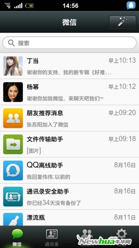 在產品界面方面,旺信走的也是大眾化的路線,這一點和微信、米聊以及陌陌等一些常用的社交應用一比較就可以看出,如圖: