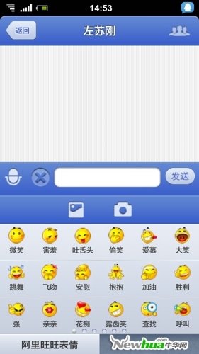 在旺信的聊天互動裡,為用戶提供了最為基本的兩種聊天模式,文字和語音,這也和當前的一些同類社交應用在模式上很類似,除此之外,聊天還增加了阿裡旺旺的表情系統,讓聊天可以更具互動性。
