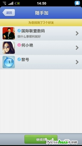 隨手加可以隨機搜索同時在使用隨手加的用戶,和微信的搖一搖功能原理相同,只是做法不同,由於每個時間段使用“隨手加”的用戶都不同,所以這種隨機性在這裡就顯得頗具特色。