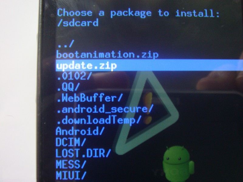 5、出現的是SD卡的根目錄,同樣用音量鍵選到Update.zip