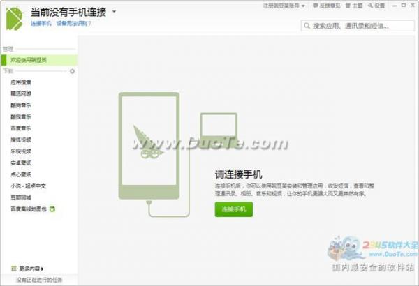 安裝完成後打開豌豆莢,可以看到當前沒有手機與其連接。