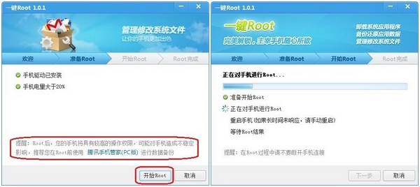 三、進入Root准備階段,這一步最重要的就是要備份好你手機的數據!備份完成後再點擊【開始Root】: