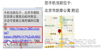 第三步:其中“追蹤手機位置”的相關指令發到被盜手機後,發送指令的手機會收到一條短信,短信中包含被盜手機的地理位置信息,點擊地址鏈接,即可查看地圖上所在位置