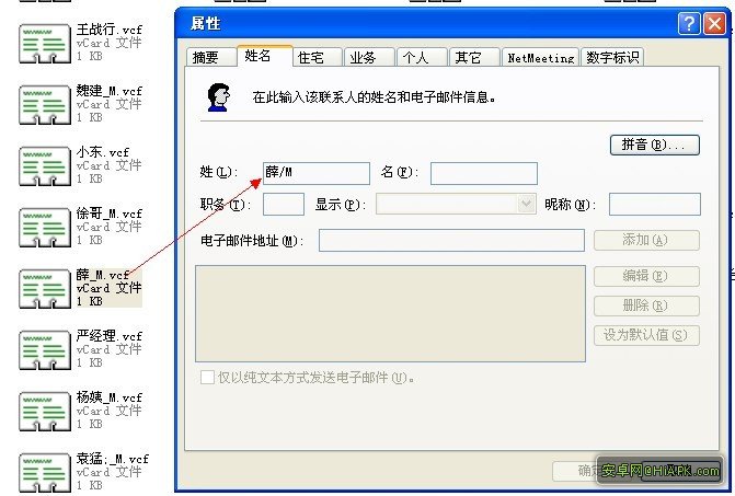 在百度上搜索了一下,VCF亂碼的問題,和我遇到的這個問題的網頁不是太多,但是解決的辦法無非是兩種:1.用VCFEncoding這個軟件,先導入亂碼 VCF再到處,然後用FOXMAIL導入導出等等,(具體百度一下 VCF亂碼可以第一個就是解決辦法)2.用TXT文本文檔打開*.VCF文件,然後另存為TXT,保存時把編碼設置成 ANSI,最後把修改後的文件擴展名修改成 VCF。 也就是說,應該是WINDOWS無法識別原來的UTF-8編碼造成顯示亂碼的問題。