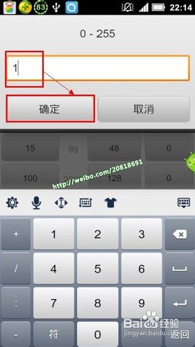 在出現的新窗口中點擊右方中間部分第一個按鈕“0”,如圖所示,然後將它的值改為1,點擊“確定”按鈕編輯“1”成功。