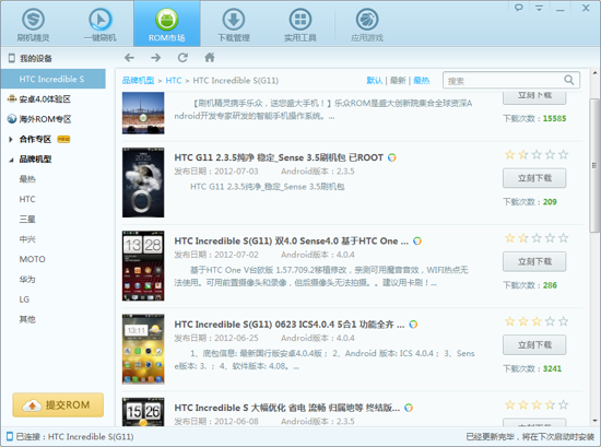 樂眾刷機工具會自動識別手機信息,你找到G11的rom專區