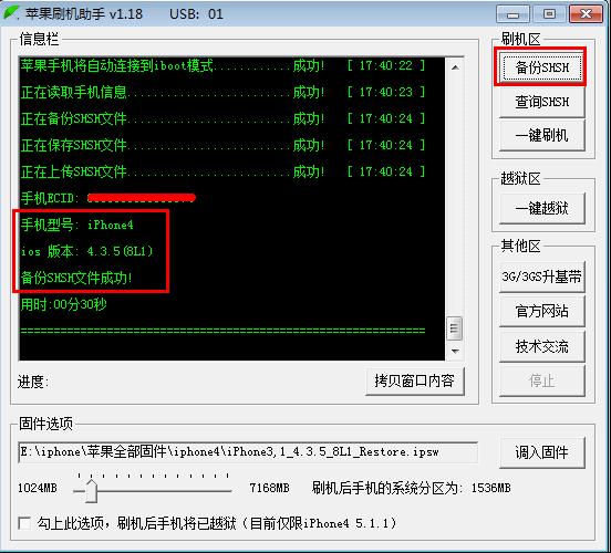 注意:蘋果刷機助手有保基帶功能,即使你用原廠固件刷機,刷完還是手機原有的基帶版本。