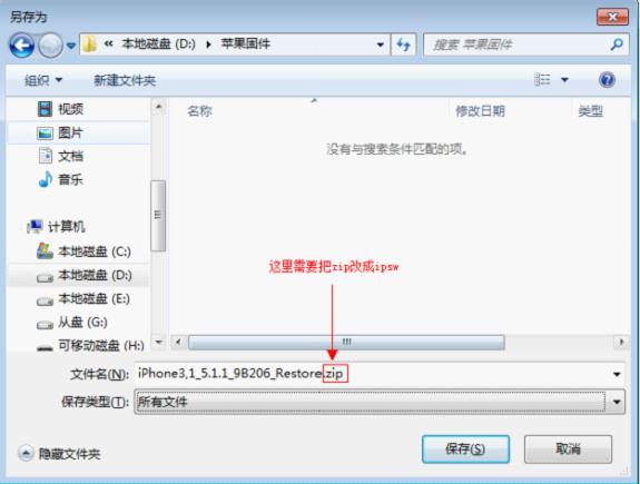 當固件下載完成之後,如果後綴名為zip,請將後綴名改為*.ipsw,固件名稱的前面部分千萬不要改動。點擊"調入固件"按鈕,選擇你剛剛下載的固件。注意:蘋果刷機助手有保基帶功能,即使你用原廠固件刷機,刷完還是手機原有的基帶版本。