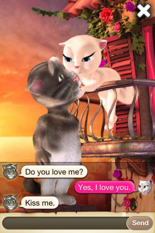 《湯姆愛安吉拉 Tom Loves Angela》游戲中,湯姆和安吉拉回來了。會說話的湯姆一直爬上了屋頂,就是為了看一眼安吉拉。他要向她重復您的話、唱歌、和她聊天和贈送禮物向安吉拉求愛。但金格爾也在那兒,要讓可憐的老湯姆變得一團糟。 新特色:首款會說話的朋友應用程序,其中的人物會聰明地回答問題。實際上您可以和安吉拉對話。長時間的智慧無限,有時的聊天妙趣橫生。