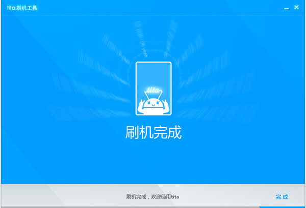 6)如第一次刷機,預計需等待20分鐘左右(受網絡速度影響),刷機成功將出現成功字樣。恭喜,你已經成為tita一族,開始享受tita帶給你的愉悅吧。