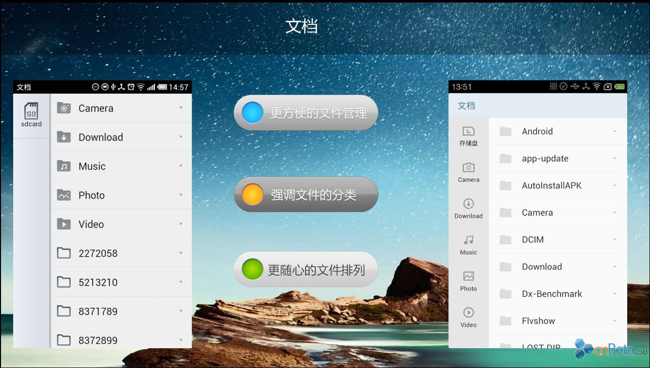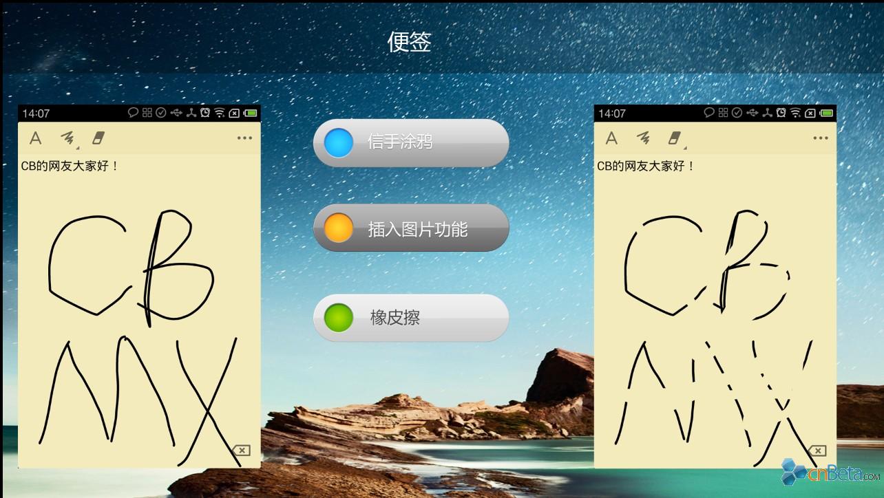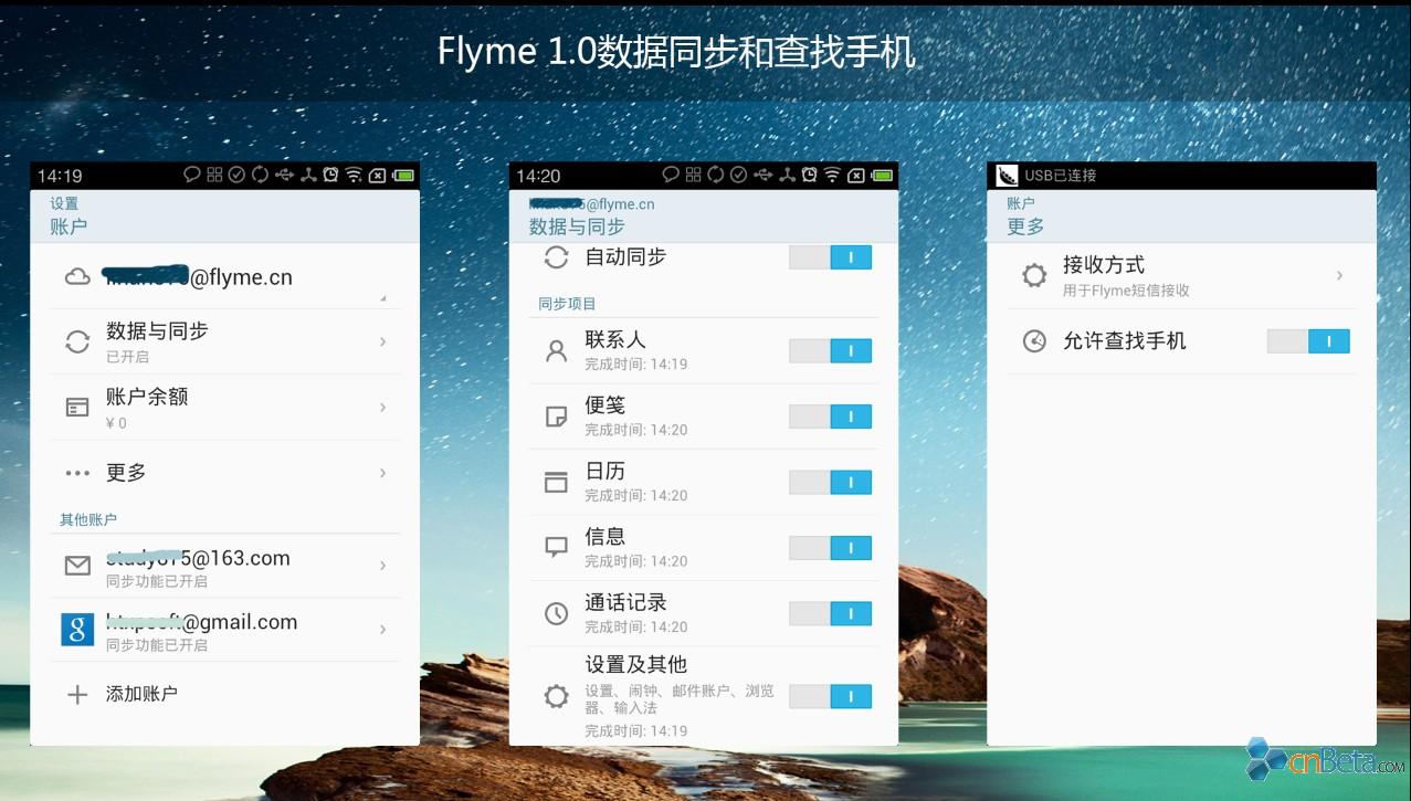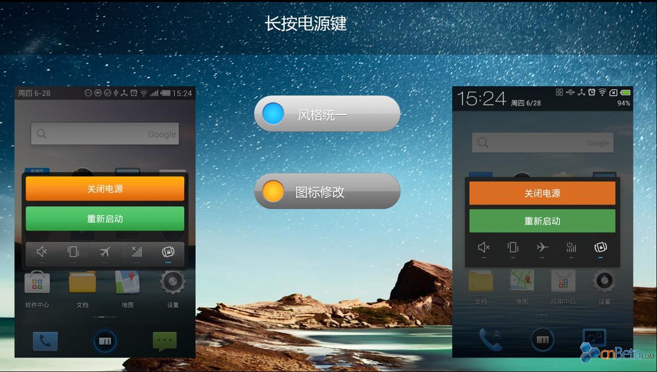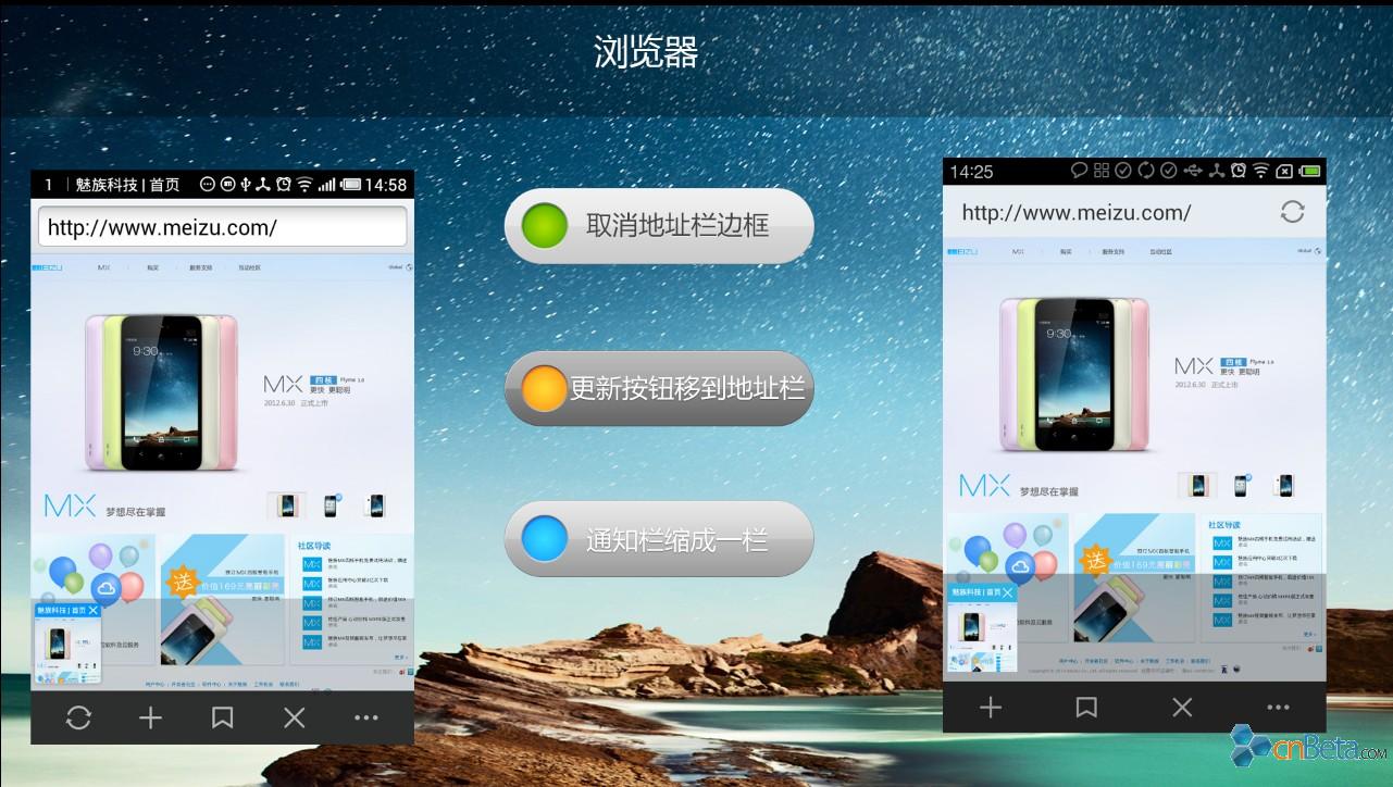 Flyme OS 1.0為基於Android4.0由魅族深度優化的系統,在界面和內容上均有所改變,在提供強悍的硬件的同時優化系統和軟件的運行速度和顯示效果,強調個性化的手機。(左圖為舊系統,右圖為Flyme,下同)