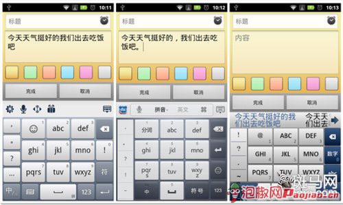 QQ輸入法軟件預留的錄入時間較短,無法完整收錄內容。而在使用搜狗和觸寶的過程中會發現,這兩款輸入法都不能直接將文字輸入到文本框,而是需要用戶在多個識別結果中進行選擇,增加了一個步驟從而也會影響輸入速度——這也是正是谷歌的語音搜索的特征。另外,在候選布局上,觸寶的候選詞欄面積較小,備選詞被遮擋,不便讀取。