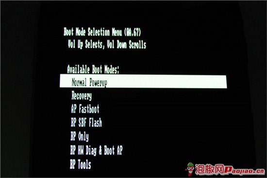 Wipe:關機狀態下先同時按住音量上和音量下,然後按下power鍵約1秒鐘,看到如下畫面: