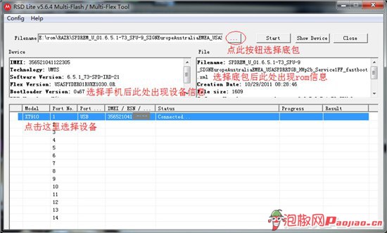 此時,如果手機能夠正常開機且電腦能正確識別USB設備,那麼RSD中應該會顯示出手機信息。點擊浏覽按鈕選擇底包文件夾中的xml文件,rom信息即會顯示在File窗口如果手機無法正常進入系統,可在關機狀態下先按住音量下,同時按下power鍵,即可進入BL刷機界面: