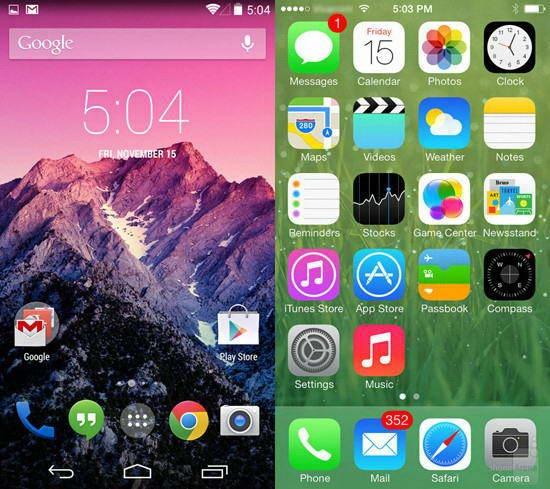 在最近,Android和iOS都各自升級到了最新的版本,並變得更加漂亮、快速和全能了。與此同時,這兩款操作系統在許多方面都呈現出了同質化的跡象。但是,它們也都各自擁有一些獨特的元素來區別彼此——這些有的是優勢,而有的卻是劣勢。日前,科技網站PhoneArena就對Android 4.4 KitKat和iOS 7兩款系統在各個方面的表現和處理進行了細致的對比: