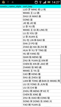 可以看到,這 一列非常人性化地幫我們記錄了漢字所對應的拼音,這樣我們就可以通過這一列的值輕松為聯系人進行排序 了。