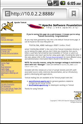 本篇文章試圖解決這樣一個問題:如何在Android模擬器上訪問本地的Web應用? 例如,在你的開發機器上 啟動一個Tomcat服務,接著打開電腦上的浏覽器,默認情況下輸入http://localhost:8080/就能夠訪問到 Tomcat的主頁面;那麼,如果我們想在Android模擬器上來訪問,可以嗎?答案是肯定的,但是訪問的URL會有 所變化,這又是為什麼呢?請繼續往下看。