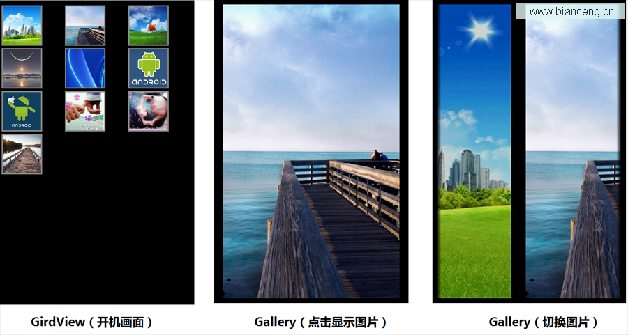 Android系統自帶一個GridView和Gallery兩個控件,GridView網格顯示,Gallery單個浏覽,兩者結合起來可以真正實現 Gallery浏覽圖片效果。