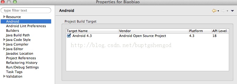 而自己的target可以從Project-Properties中獲得。如圖中target為18.