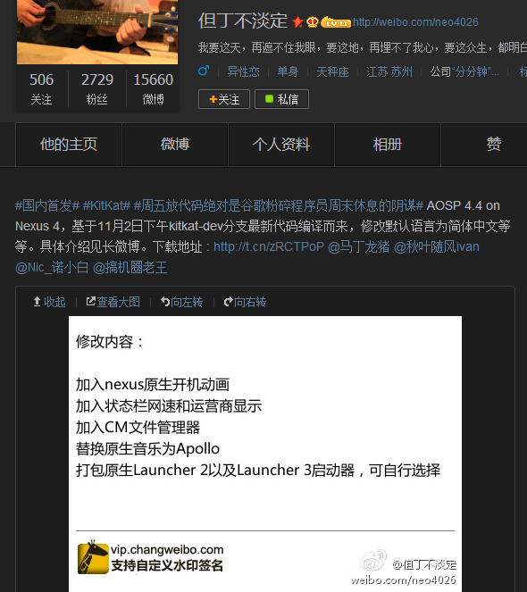 不得不承認,這是個高效率的時代!從刷機精靈微博了解到,上周五,Google發布了Android4.4的源碼,這不,剛過了一天,Nexus 4機型的4.4 ROM就已經率先被國內知名開發者“但丁不淡定”成功編譯並且將其發布到了著名的ROM資源平台ROM之家以供開放下載。