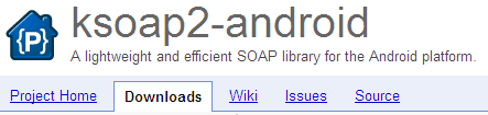 ksoap2 android當前的最新版本為2.5.4,名為ksoap2-android-assembly-2.5.4-jar-with- dependencies.jar,它的下載地址是:http://code.google.com/p/ksoap2-android/,進入頁面後,點擊 “Downloads”標簽頁,如下圖所示: