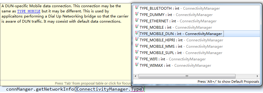 在ConnectivityManger對象中有一些相關的方法