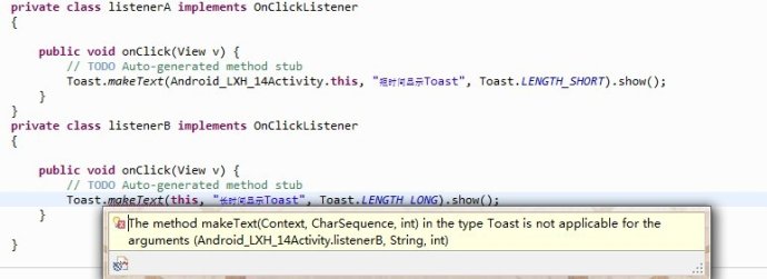 Context字面意思是上下文,位於framework package的android.content.Context中,其實該類為LONG型,類似Win32中的Handle句柄。很多方法需要通過 Context才能識別調用者的實例:比如說Toast的第一個參數就是Context,一般在Activity中我們直接用this代替,代表調用者的實例為Activity,而到了一個button的onClick(View view)等方法時,我們用this時就會報錯,所以我們可能使用ActivityName.this來解決,主要原因是因為實現Context的類主要有Android特有的幾個模型,Activity以及Service。