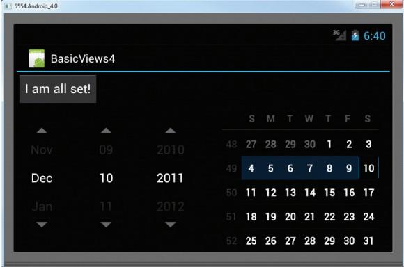 DataPicker和上一節講的TimePicker很相似。使用DatePicker,可以讓用戶選擇一個特定的日期。下面展 示如何使用DatePicker。