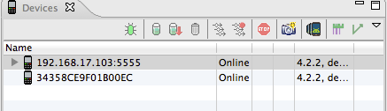 如果一切正常,就已經連上了,打開Eclipse,會在devices列表看到如圖2的設備。