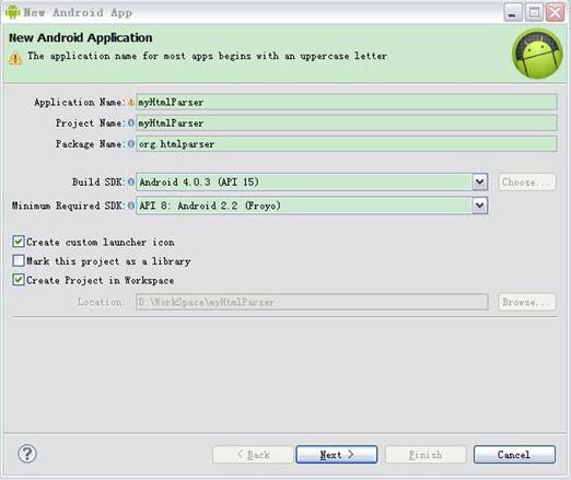 下面通過實例了解如何在 Android 工程中使用 HTML Parser,即創建 HTML Parser 的 Library 工程,並且 將其導入到需要引用的 Android 應用中:
