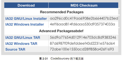 進入CodeSourcery的下載頁面後,會看到如圖2-31所示的下載鏈接。目前CodeSourcery有Windows和Linux兩個版本 。本書使用的是第1個(IA32 GNU/Linux Installer)。