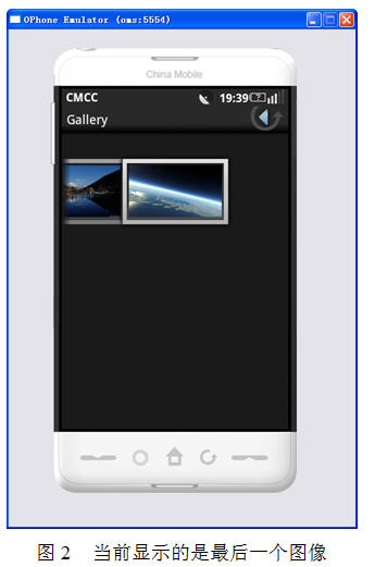 在實現可循環顯示圖像的Gallery組件之前先來回顧一下Gallery組件的傳統用法。Gallery組件可以橫向顯示一個圖像列表,當單擊當前圖像的後一個圖像時,這個圖像列表會向左移動一格,當單擊當前圖像的前一個圖像時,這個圖像列表會向右移動一樣。也可以通過拖動的方式來向左和向右移動圖像列表。當前顯示的是第1個圖像的效果如圖1所示。Gallery組件顯示到最後一個圖像的效果如圖2所示。