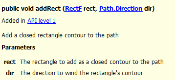 void addRect (float left, float top, float right, float bottom, Path.Direction dir) void addRect (RectF rect, Path.Direction dir)