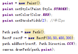 3、矩形路徑用到的是RectF類,注意不要使用Rect類