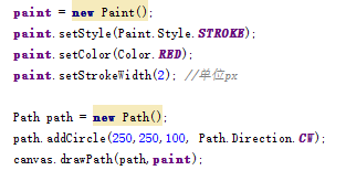 繪制路徑:void drawPath (Path path, Paint paint)