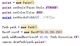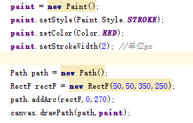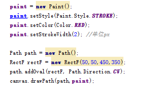 可以發現和繪制矩形路徑類似 用到了RectF類