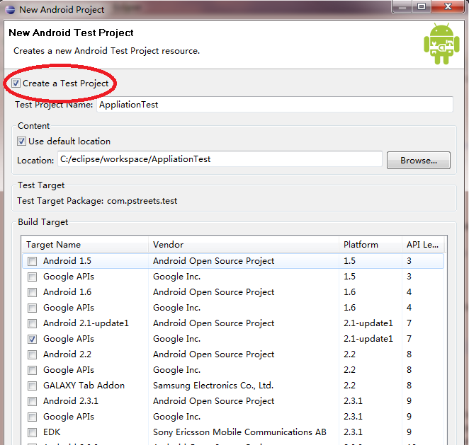 Android的編譯和測試工具需要測試項目組織符合預訂的結構:分別為Test case 類,Test case 包以及測試項目。JUnit 為Android的測試的基礎,
