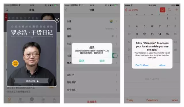 Alert:當提示信息是至關重要的,並且必須要由用戶做出決定才能繼續的時候,請使用Alert。非用戶發起的(即系統自動發起)一般都用Alert。