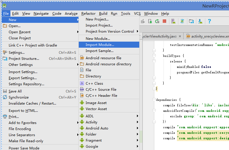 as 引用模塊 ( android stdio modules ) as 模塊 使用 android stdio modules 1.在g