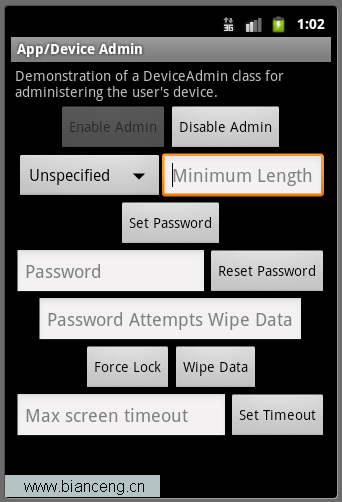 Device Admin示例介紹了類DeviceAdminReceiver,DevicePolicyManager和ActivityManager。類 DevicePol