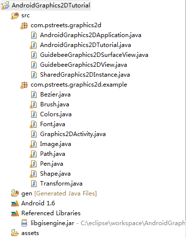 AndroidGraphics2DTutorial定義了應用的主Activity,下面就可以開始寫每個具體的二維繪圖示例。不同的例子將盡量采用 不同的UI控件:Menu,