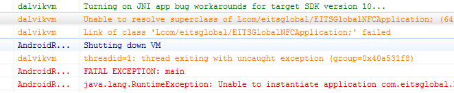 如果你升級ADT升級到17,發現原先的應用無法啟動,出現alvikvm(2658): Unable to resolve superclass of XXX的錯誤:而Ap