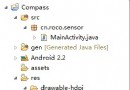 步驟1:新建一個項目Compass,並將一張指南針圖片導入到res/drawable-hdpi目錄中步驟2:設計應用的UI界面,main.xml<?xml vers