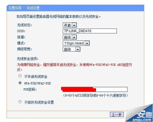 然後我們開始無線設置,這裡的無線路由器怎麼設置其實很簡單,但是這一步關系到你的手機能否使用wifi上網,所以一定要細心,不能出錯。我們看到有很多選項,如圖所示,無線狀態自然是開啟,SSID你可以設置一個比較奇葩的名字,例如xunleifuck,CCTVonline之類的。信道選擇自動,模式一般選擇11bgn mixed’,頻段帶寬也選擇自動。無線安全選項一定要選擇WPA-PSK/WP2-PSK,這是因為如果你不設置密碼,絕對會被鄰居蹭網,那就有可能拖延網絡啦,所以這一點絕對要注意。密碼設置成比較復雜的,以免被別人暴力破解,當然密碼你也得牢牢記住才行。