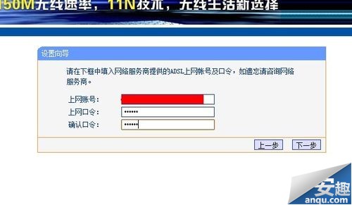選擇PPPoE之後,下面就要輸入上網賬號和密碼了,也就是你平時上網所用的賬號密碼,如果不記得了,可以去翻找一下當初跟運營商簽的上網協議,上面一般會記錄賬號密碼。
