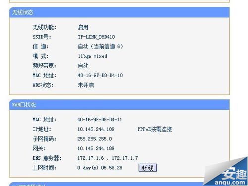 接下來路由器會自動重啟,當你看到後台首頁出現WAN口狀態處於連接狀態,那麼就說明你設置成功了,無線路由器怎麼設置你學會了嗎?