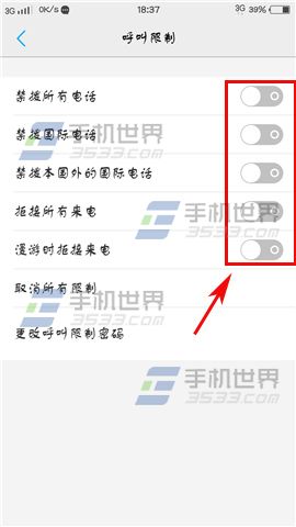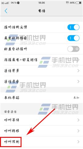 2)接著下拉找到【呼叫限制】,最後我們即可根據自己的需求開啟相應的選項就可以了。(如下圖)