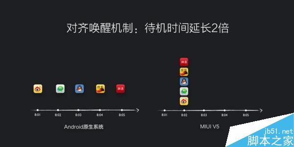當初發布MIUI 7的時候,與之出現的還有MIUI的省電模式——對齊喚醒機制。雷軍表示在這種省電機制下面,手機續航時間可以增加25%,待機時間至少增加三個小時。三個小時的待機時間對於一天一充的Andriod來說實在誘人。