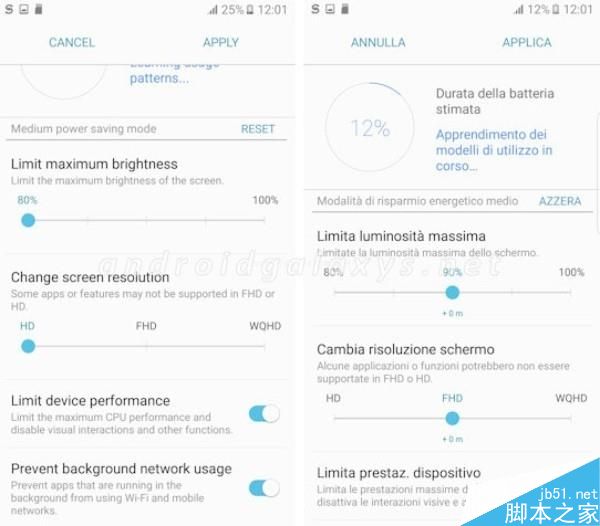 三星Note7支持更改屏幕的分辨率,調整到更低的分辨率以節省電量。從屏幕截圖來看,三星Note7屏幕分辨率支持在QHD(2560 x 1440)、FHD(1920 x 1080)和HD(1280 x 720)之間進行調節。